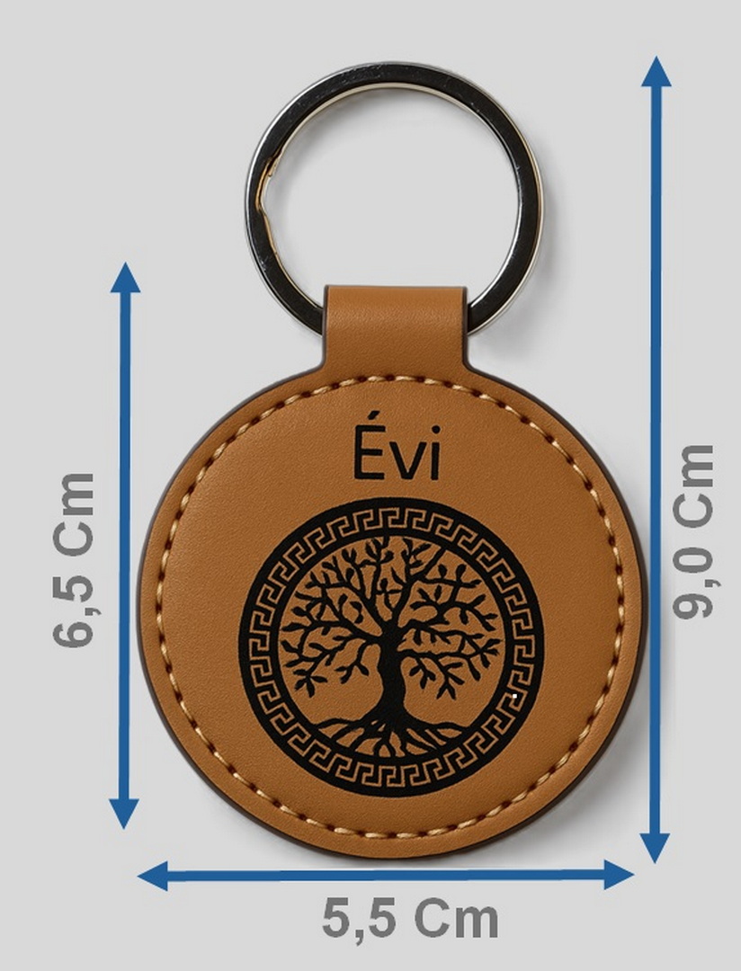 Görög életfa (kerek) prémium öko-bőr kulcstartó