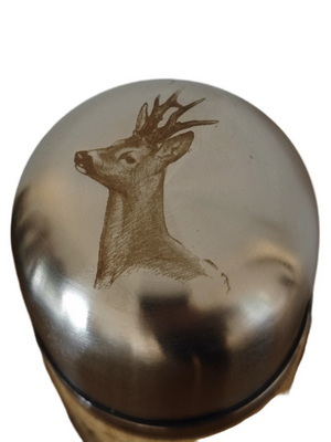 Szarvas mintás duplafalú rozsdamentes acél termosz bambusz borítással.