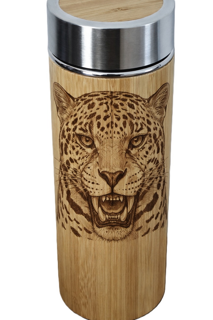 Jaguar patterned bamboo thermos
